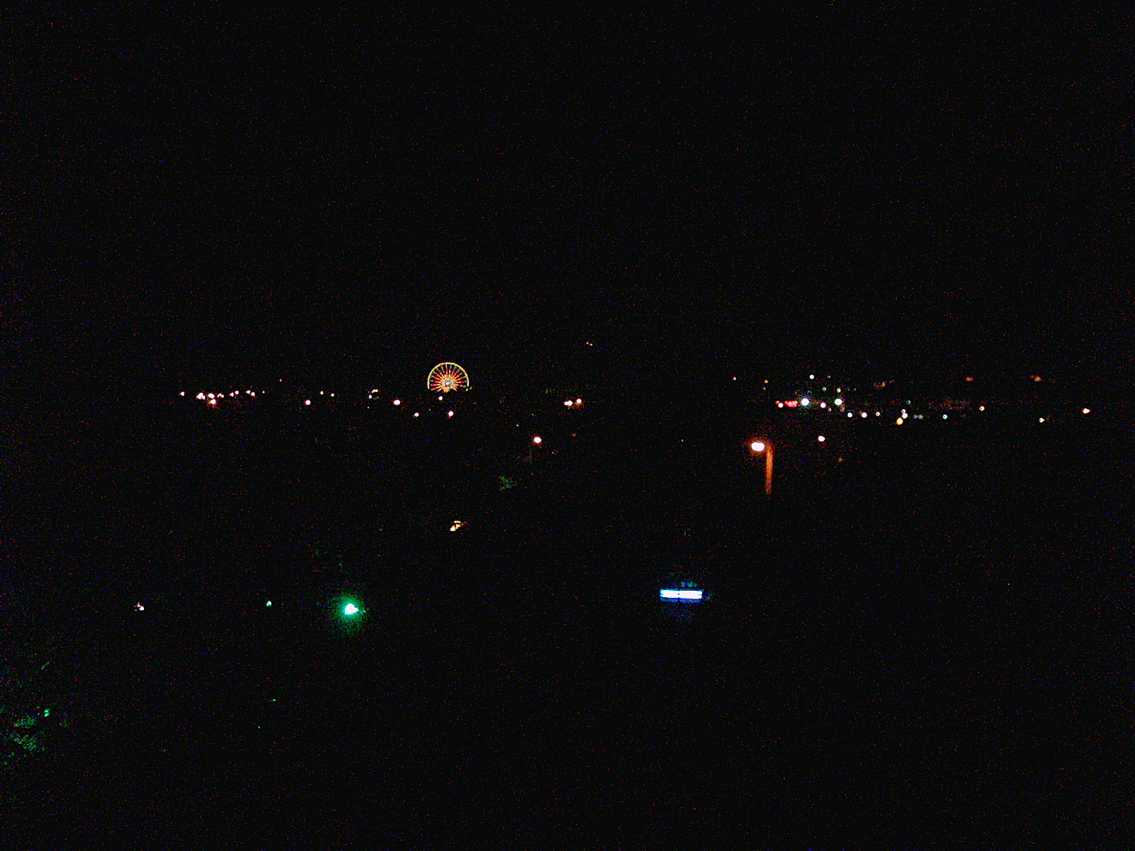 Der Kran, der auf dem Bild zu sehen ist wird fürs Bugeejumping benutzt. Zwischen den beiden beleuchteten Pfeilern weiter links kann man sich in einer Kugel, die an Gummis befestigt ist, in den Himmel schleudern lassen.