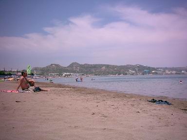 Am nächsten Tag - mit dem Wissen, wo es lang ging sind wir dann doch relativ schnell an den Strand gekommen. Von Hotel Evi sind es ca 10-15min zu laufen. Am Strand sind mehrere kleine Cafe´s und Restaurants mit relativ normalen Preisen. Eine Liege kostet am Tag 3,50€ - also find ich etwas teuer - wenn man jeden Tag eine Liege haben möchte - Bei zwei Liegen geht das auf Dauer ganz schön ins Geld! Der Sand war heiß - das Wasser für mich kleine Frostbeule etwas zu kühl - habe eine Ewigkeit gebrauch um endlich ganz im Wasser zu sein - zumal ich mich in der knallenden Sonne sehr aufgeheizt habe. Ich weiß nicht mehr genau wie lange wir am Strand waren - Entgegen jeglicher Warnung sich intensiv einzucremen habe ich mir einen Sonnenbrand eingehandelt, der mich zwei Tage fiebern ließ! Also hier meine Warnung! Sonnencreme nicht vergessen!