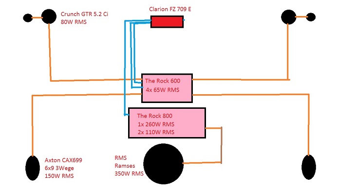 Es bestand aus einem Multimediaradio (NoName) von Plu2 welches über ein DVD-Laufwerk verfügte - Mpegs und mp3 abspielen konnte. Desweiteren kam ein 7´Monitor zum Einsatz. Lautsprecher vorne und hinten zu der Zeit noch die Original - Nokia - Lautsprecher.