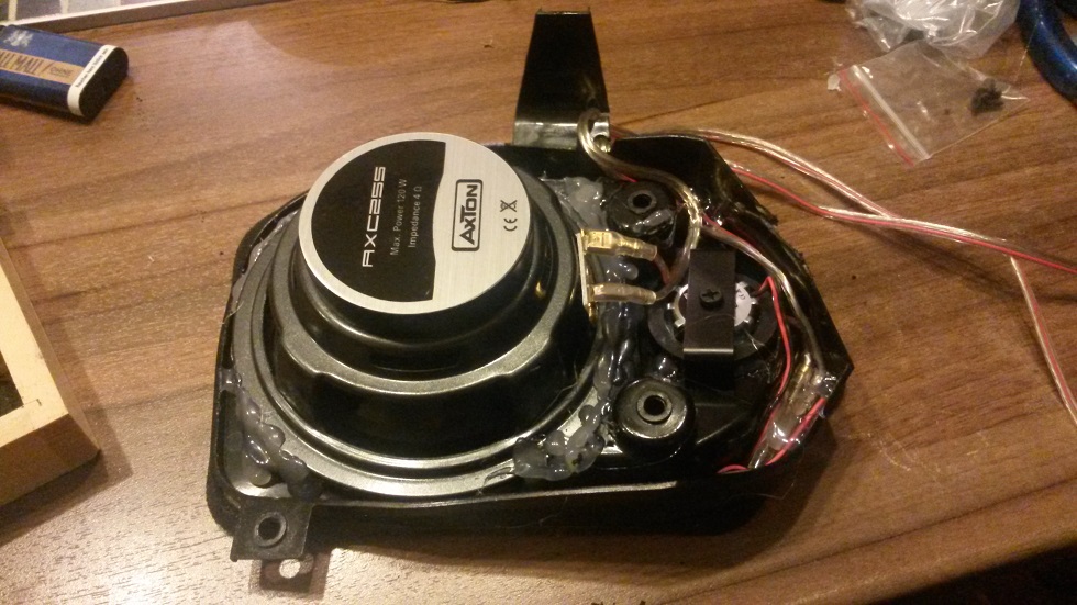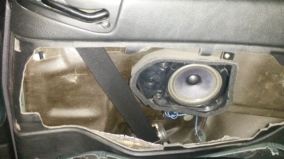 Da es ein Cabrio ist musste ich etwas umdenken. Die Einbauten sind noch mit original Nokia Lautsprechern und einem BMW - Buissness-Cassettenradio. Vorne passen 13cm und hinten 10cm Lautspecher in die Originalvorrichtungen. Ich muss zugeben, dass die Original-Nokia-LS sich gut anhörten und sogar relativ guten Bass geboten haben - aber etwas lauter gestellt übertönte sich alles und die Tieftöne verzerrten.